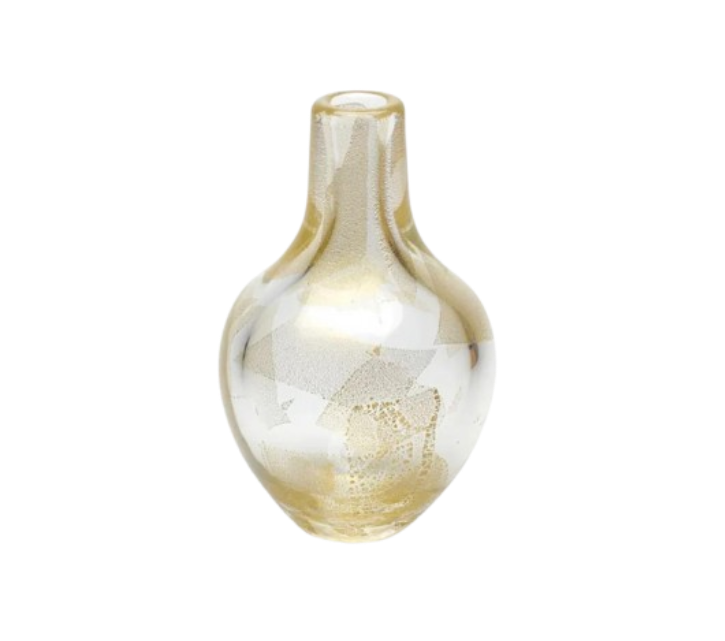 Florero transparente mini con burbujas simétricas y efecto dorado debido a la aplicación interna de Oro de 24K.